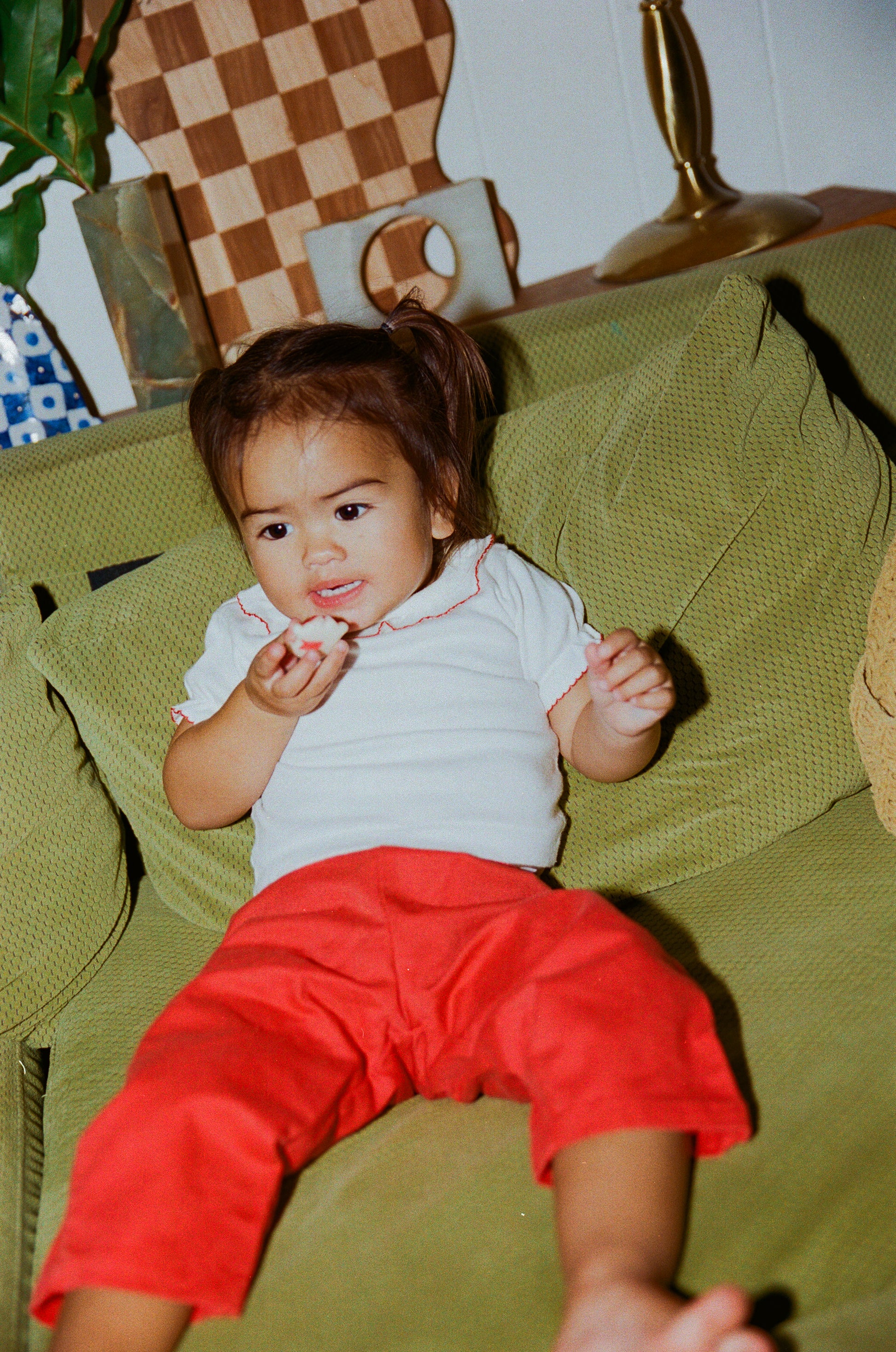 White tee with red trim