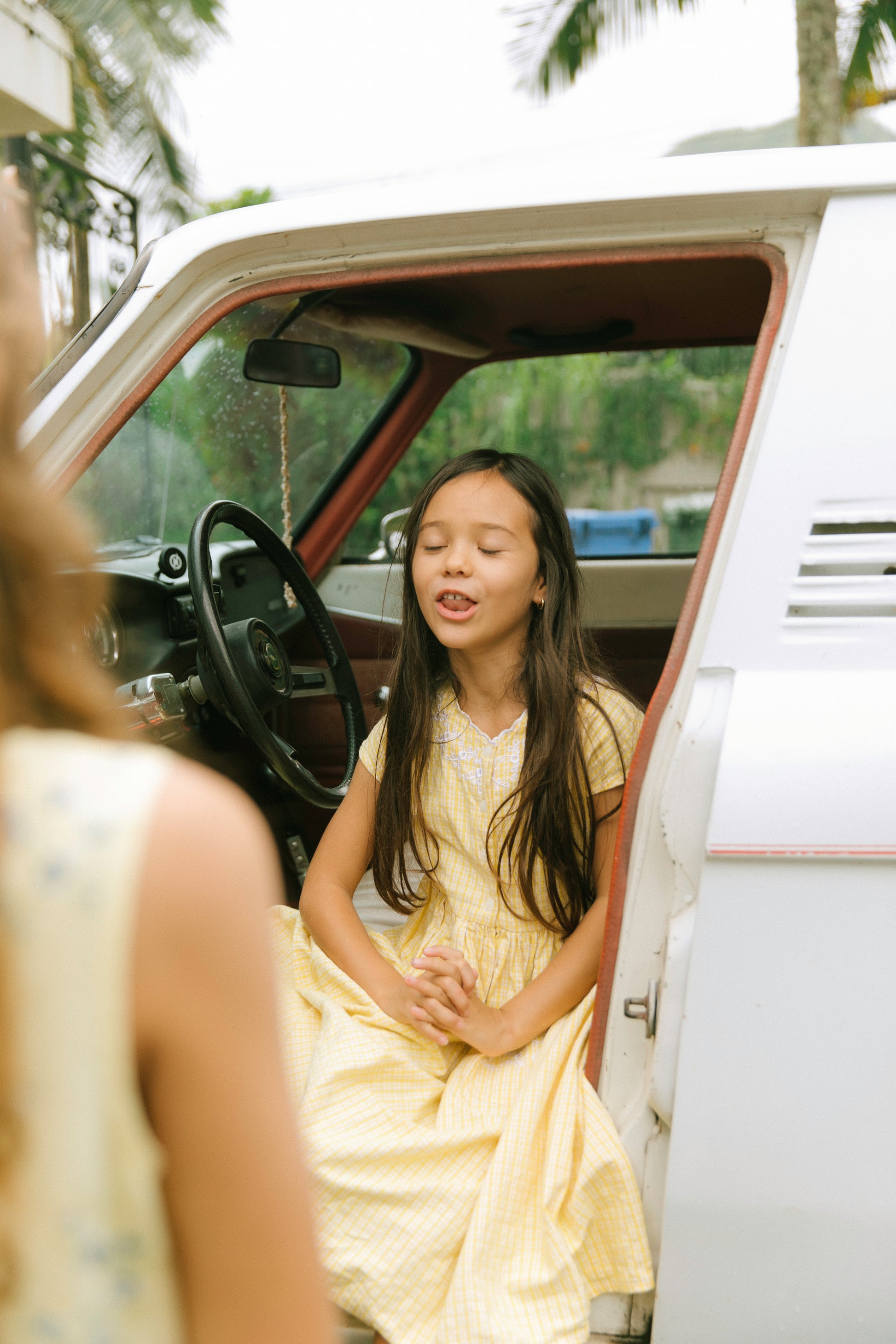 Yellow Plaid Dress with Embroidery
